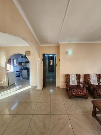 Main house comprising of 4 spacious bedrooms all with built-in cupboards. The main bedroom has a mes.The kitchen is fully fitted with ample built-in cupboards. The open plan lounge and dining room concept is perfect for relaxation and entertainment. The guest bathroom is neatly fitted with a bath, sink and toilet.Additional features include a prayer room, spacious verandah and a basement storage. Subsidise your bond from rental income from the outbuilding offering a kitchenette, large bedroom and bathroom.Call urgently to make this prime property yours.