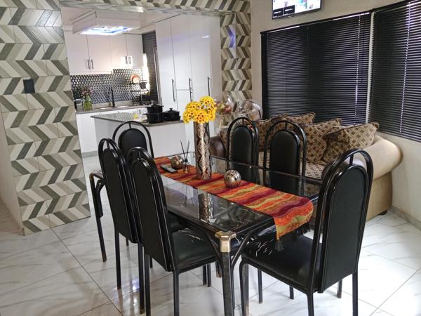 dining area flows into a sleek, fully fitted kitchen with a hob, oven, and extractor fancompact yet cleverly designed to
