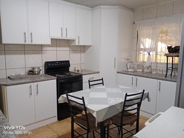 Step into a bright, inviting home that has been thoughtfully designed for comfortable family living. The open and airy lounge sets the tone, offering the perfect place to relax after a long day. The spacious, fully fitted kitchen boasts generous cupboard space and leads to a neat scullery and laundry area, giving you the extra convenience every home needs.