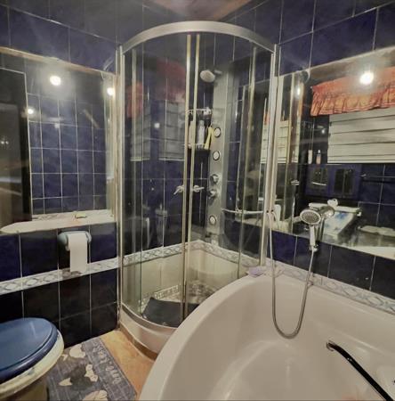 The upper level offers three bright and airy bedrooms, each with built-in cupboards and ceiling fans, as well as a convenient guest toilet. Downstairs, a fourth bedroom and a beautifully updated full bathroom create an ideal setup for guests, extended family, or a private retreat. The bathroom includes a relaxing corner tub and a shower with multiple spray settings.