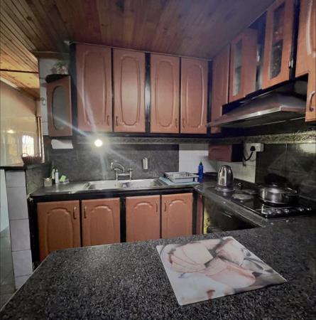 A spacious entrance foyer adds versatility use it as a second lounge, TV room, or an entertainment area. Outdoors, the property truly shines: the fully covered, tiled backyard includes a built-in braai station and cooking area, creating the perfect all-weather spot for hosting gatherings.