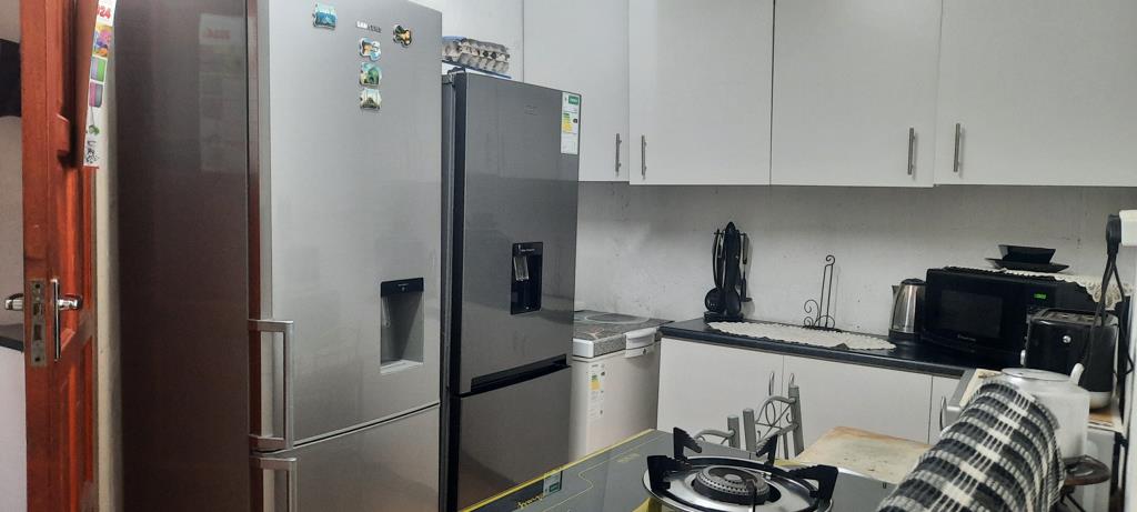 The property features a generous lounge area and a kitchen equipped with built-in cupboards. A bathroom with a shower serves the household, with 2 bedrooms conveniently located on the ground floor and 3 upstairs, providing ample living space for your family or guests.