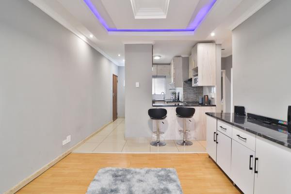 The apartment features two spacious bedrooms, complemented by a well-appointed bathroom. The heart of the home is the modern kitchen, designed with both functionality and aesthetics in mind, seamlessly flowing into a cozy lounge area that is perfect for relaxation or entertaining guests.