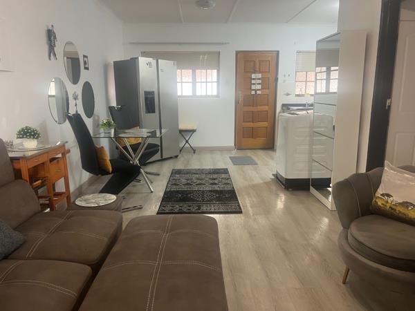 The apartment features an open-plan lounge, kitchen, and dining area, creating a spacious and airy ambiance perfect for relaxation or entertaining. The well-appointed kitchen boasts modern finishes, sleek cabinetry, and ample counter space, making meal preparation a delight. The bedroom is generously proportioned, offering a tranquil retreat, while the modern bathroom is designed for both comfort and convenience.