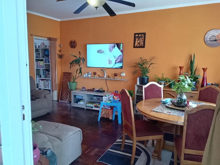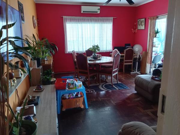 Lounge/Dining room open plan with air-conditioning and ceiling fan.