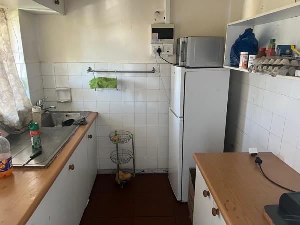 This centrally situated flat with parquet floors of a good sized lounge / bedroom with airconditioning and built-in cupboards.