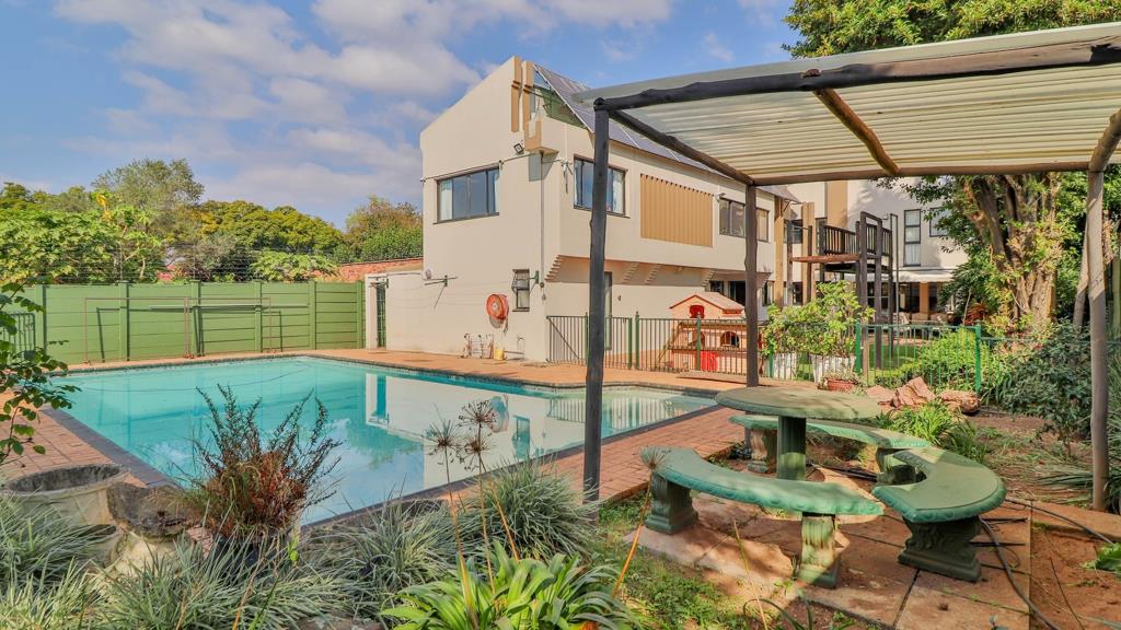 Entertaining is a breeze with seamless transitions between the TV lounge, dining area, and formal lounge. Step outside to a sprawling flat garden with a family-sized pool, a 3-phase generator, and Jojo tanks for backup.