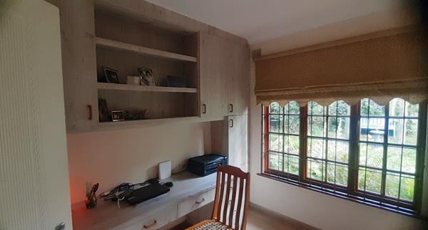 Consisting of 3 bedrooms, kitchen, lounge, dining room, 2 bathrooms (mes), garage, and manageable garden. One bedroom has been fitted out as a study with lovely units and numerous electrical plug points. The window-blind is included in the sale. This room can still be used as a third bedroom if required. Built in cupboards are included throughout and the main bedroom has an air conditioning unit.