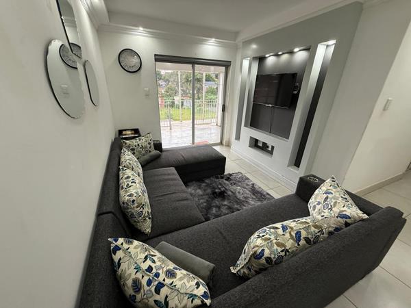 The spacious lounge seamlessly connects to the dining area, creating a modern open-plan layout thats perfect for both relaxation and entertaining. A custom-designed TV wall unit enhances the rooms sleek aesthetic while adding practical storage the ideal blend of comfort and contemporary style.