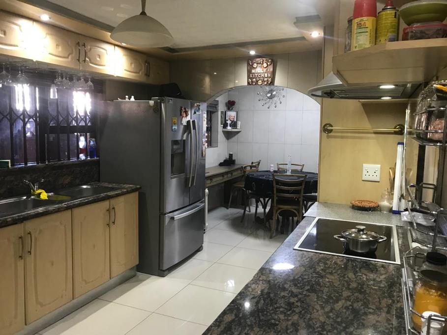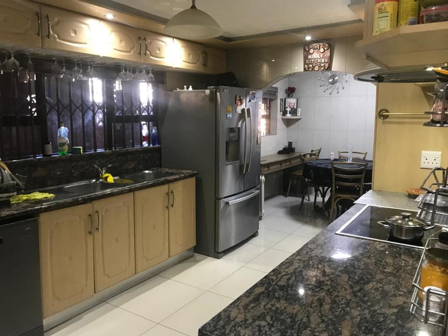 A master piece fully fitted kitchen with granite countertops that leads into a dining room and scullery.