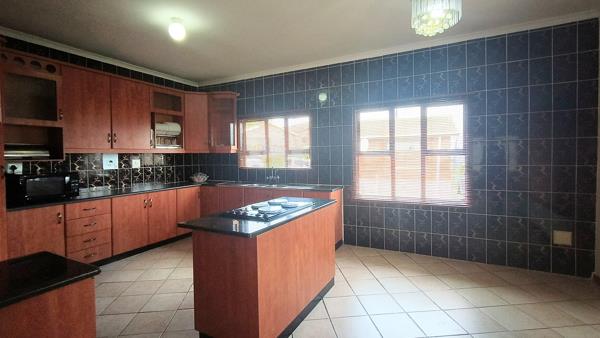 Inside, the home features a comfortable lounge and a dedicated dining room, providing great spaces for family time or entertaining friends. The heart of the home, the kitchen, is super spacious! It boasts extensive light wood cabinetry, sleek dark granite-look countertops, and a handy island with an integrated stovetop. A double sink under two windows means plenty of natural light while you''re whipping up meals, and the tiled flooring throughout makes for easy cleaning.