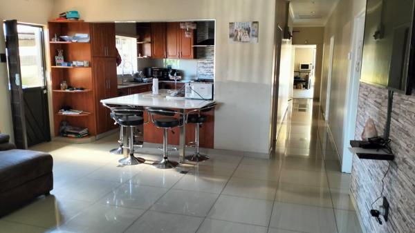 As you enter, youre immediately greeted by a spacious, open-plan layout that includes a dining area, cozy TV room, and a sleek, modern kitchen with an abundance of built-in cupboards, ideal for keeping everything organized. The entire home features high-quality modern tiles, offering a clean and polished aesthetic.