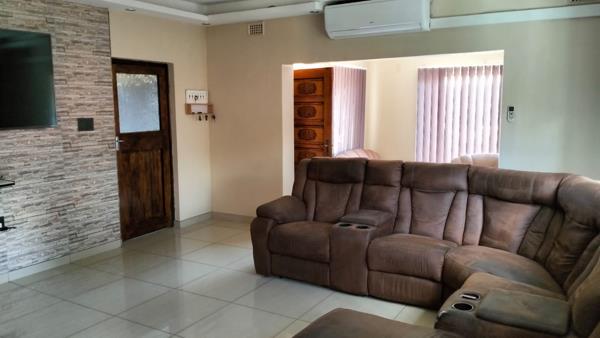 An entertainers dream, the home also boasts a separate entertainment area with a dedicated wash-up space and an additional laundry room, all fully air-conditioned for ultimate comfort. This area conveniently opens onto a back courtyard, where a well-appointed Lapa awaits an ideal setting for hosting family gatherings or simply enjoying time outdoors.