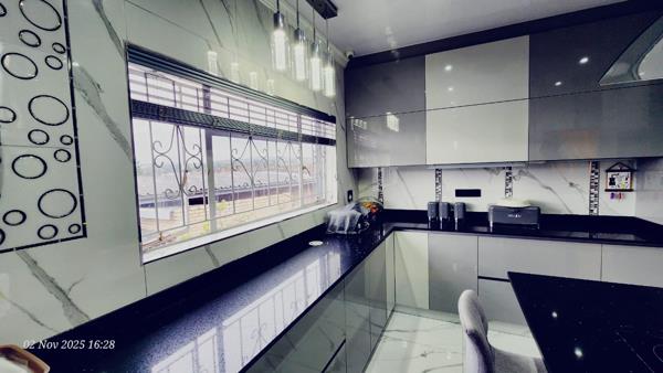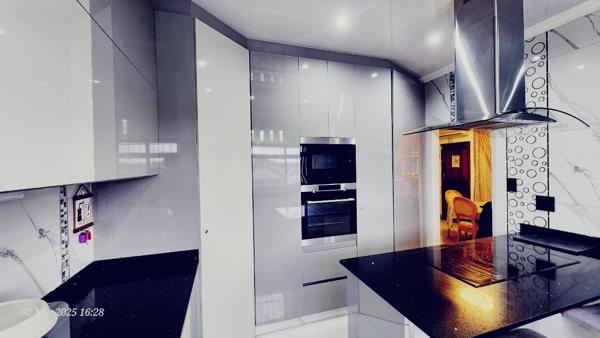 The spacious three-bedroom layout features full built-in cupboards, walk-in closets, and en-suite bathrooms. The modern kitchen flows seamlessly into the dining area, while the lounge opens to an enclosed veranda that overlooks the peaceful residential surroundings. Each room is equipped with CCTV (with the option to disable), and all main living areas including the kitchen, dining room, bedrooms, and lounge are air-conditioned for year-round comfort. An inverter system ensures uninterrupted lighting during power outages.