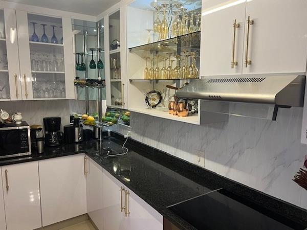 2 bedrooms with built in cupboards are served by 2 bathrooms. The main bedroom offers an en-suite bathroom.