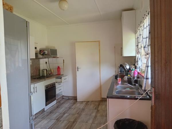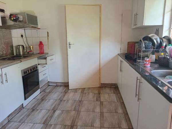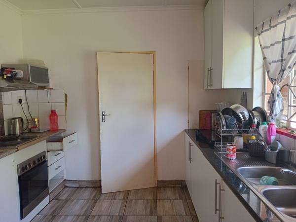 The property boasts three fully tiled, big bedrooms with built in cupboards, a fitted kitchen with stove and oven, a cozy lounge and diningroom. A seperate bathroom and toilet.