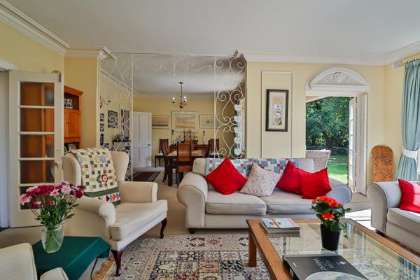Nestled in a well-established, fully enclosed garden with peaceful stream frontage, this versatile home is ideally located near top schools, office parks, shopping centres, and offers easy access to the N3. Perfect for both family living and professional use, the property boasts spacious living areas on the lower level, including a large, sunny lounge with a feature fireplace and an open-plan dining room that opens onto a covered patio and the garden. Alongside the lounge is a fully fitted study, complete with built-in shelving and a large desk - perfect for working from home.