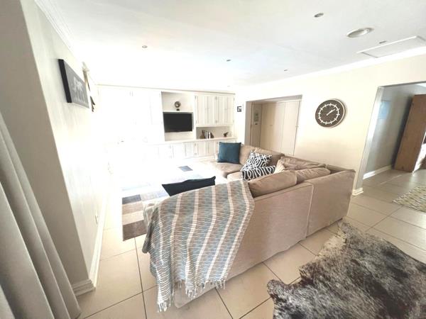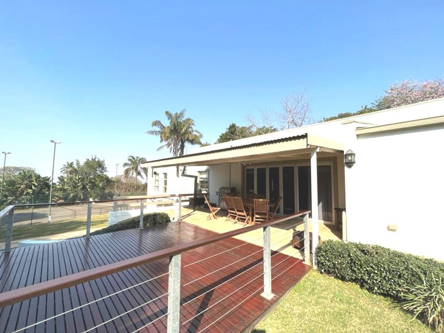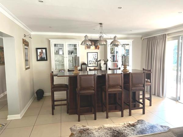 This impressive property features five spacious bedrooms, three and a half bathrooms, two inviting lounges (one with a cozy fireplace), a generous dining area, a fully fitted kitchen with a separate scullery, a home office, a tennis court, swimming pool, domestic quarters, a stylish bar area, and a beautiful deck - plus so much more.
