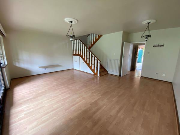Featuring a spacious kitchen, open plan living area and guest toilet downstairs. Laminate flooring throughout, the lounge/dining room leads onto a covered patio and small, manageable garden. Upstairs you will find 3 bedrooms all with built-in cupboards and a bathroom with a shower and space for a washing machine.