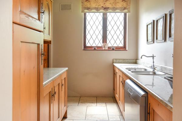 The main double storey home has a classic look with lead-detailed windows and generous living spaces. Downstairs includes two lounges and a formal dining room. A chefs dream kitchen with a large central workspace, pantry, and scullery. A home office suite complete with kitchenette and private bathroom. Ideal for working from home or as a home gym. 5 bedrooms upstairs two en-suite, plus a family bathroom with a guest toilet downstairs. The master bedroom includes a walk-through dressing area, walk-in closet, private balcony, and a luxurious wow factor en-suite bathroom.