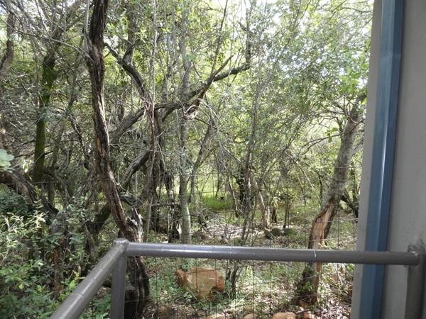 Beautiful low maintenance garden with daisy lawn- ever green (no lawnmowers) has well established natural big trees, aloes, cycads, Palindaba rock and railway sleepers. Lots of interesting artefacts. Riverine area in front of property with small non Perennial River that flows in good rainy seasons.