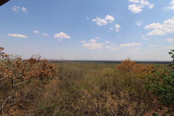Thaba Moriri, near Bela Bela, South Africa - Double story 5 bedroom house in private game reserve with breathtaking views. 3 Bedrooms (two en-suite) in main house with lounge, dining room, kitchen, scullery and large pantry. Large patio flanking 3 sides of the house. Separate flat on the ground floor with kitchen, lounge/dining area, and two bedrooms. Boma Braai area with pool room and bar and multiple store rooms. Triple garage (two with roll down doors). Space in patio deck for sunken jacuzzi. The kitchen is equipped with a combination gas and electric stove. The passage to the laundry area has large space for two fridge/freezers. A beautiful fireplace in the lounge/open plan area creates a cozy and romantic atmosphere. The boma braai area is complemented with a built-in braai on the patio for the rainy days. The house has spectacular views of the foothills of the Waterberg.