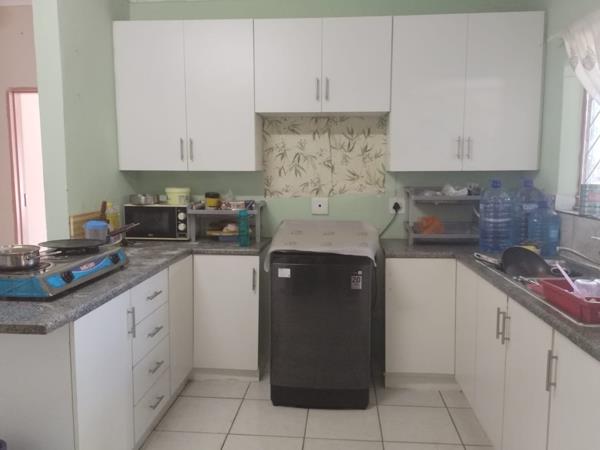 A 3 bedroom, 2 bathroom house with a 2 bedroom flatlet which has a en-suite on each bedroom. There is a kitchen, dinning and living area in the main house. All equipped with neat furnishes. There is one lock-up garage and 2 carports outside with a neat well maintained garden.