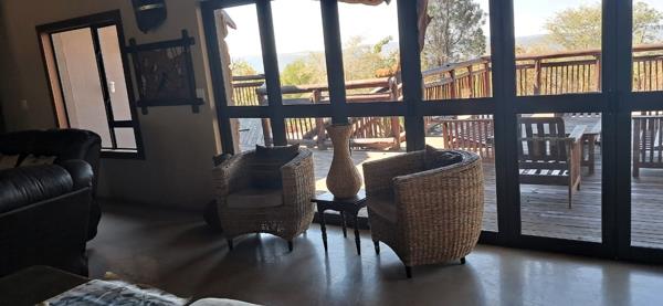A wonderful opportunity, a well designed 320 m2 home with 4 bedroom thatch roof house for sale at Highlands Wilderness Estate including all furniture and ranging vehicle.