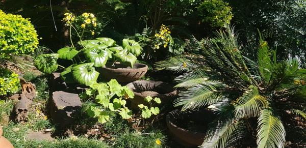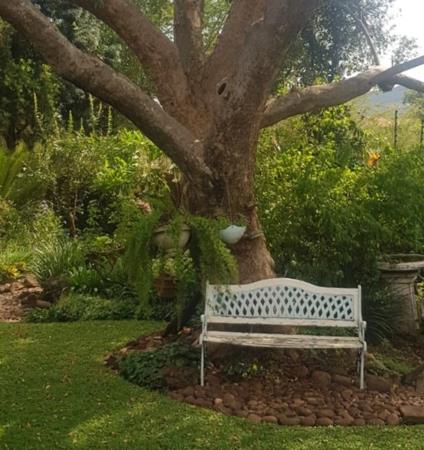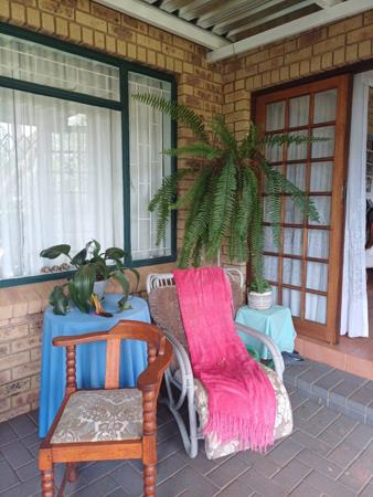 Undercover patio with built-in braai, overlooking the lush, well maintained garden