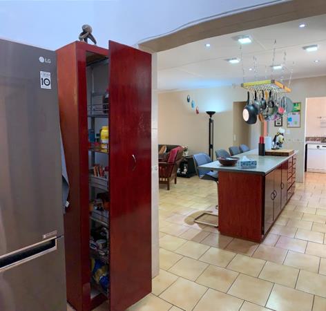 Immaculate spacious floor plan kitchen with separate scullery and laundry room, dinning room, lounge. 2 Bath rooms, 3 spacious bedrooms with built-in cupboards. Each bedroom has their own air conditioner and fan. (Master bedroom with an en-suite), study. Extra room with sliding door to the swimming pool and lapa.