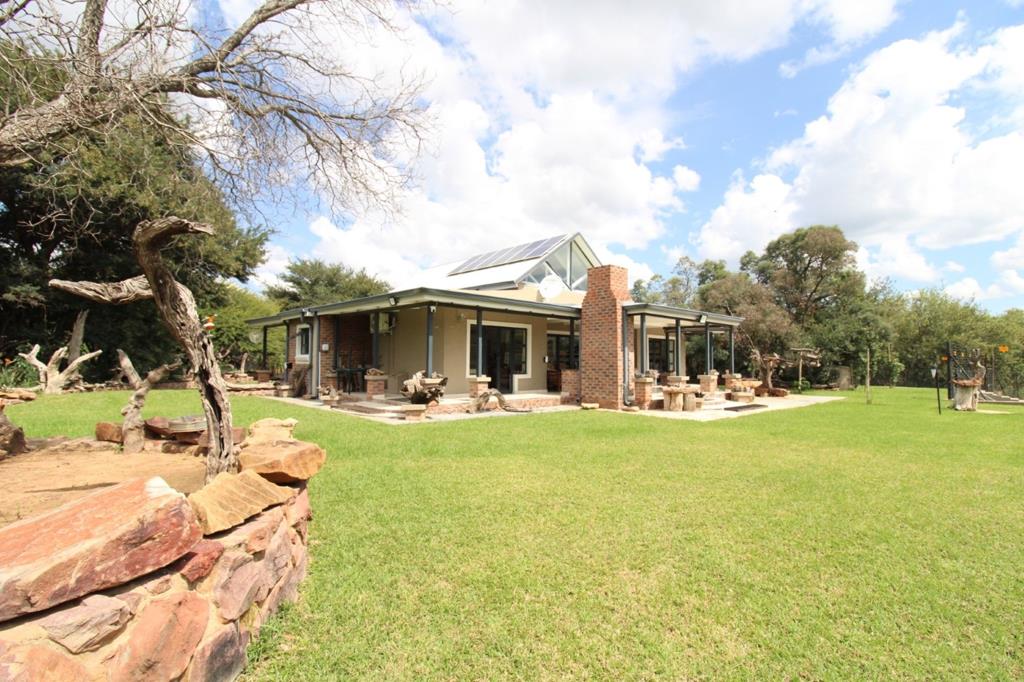 The main house, a stunning pitched roofed residence, sits on an impeccably landscaped stand enriched with attractive bush and water features. A bird hide overlooking the dam and a dedicated Bush Boma braai area (Boskamp) invite you to savour unforgettable outdoor experiences in the true spirit of bushveld living. The robust main solar installation featuring 18 solar panels, two x 5kW inverters, and 15 kW backup batteries, all underscores the estates commitment to sustainable living.