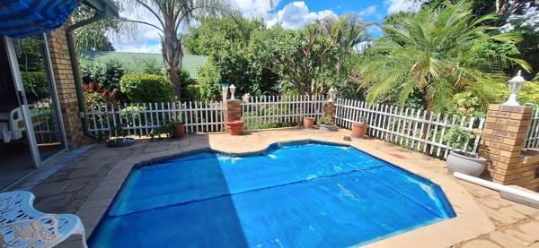 The living area leads to an elegant braai room with two doors providing natural light, ensuring an airy, bright atmosphere. From the braai room, you can access the swimming pool through a sliding door, while another door leads to a lovely stoep perfect for enjoying the outdoors.