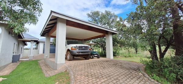 The house features a spacious open-plan living area with a built-in braai and bar, ideal for family gatherings or hosting guests. Large stacking doors open onto a covered stoep, seamlessly blending indoor and outdoor living. Outside, youll find a boma, a sparkling pool, and plenty of space to enjoy the peace and beauty of the bushveld. Nothing beats a sunset here.