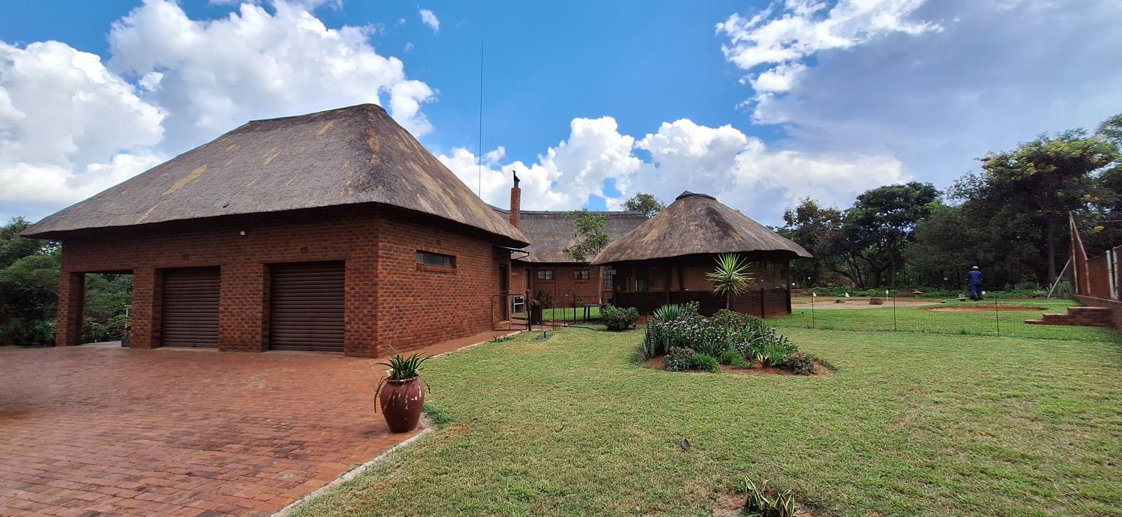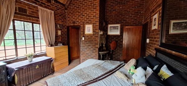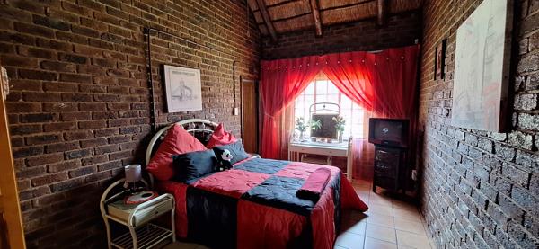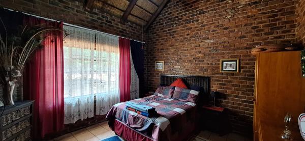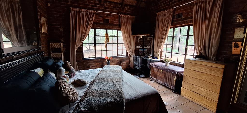 The centerpiece of the farm is a gorgeous 4-bedroom main house with two en-suite bathrooms. The thatch roof adds a beautiful holiday feel, making it perfect for long weekends or enjoying the peaceful surroundings year-round. Inside, the open-plan living and dining areas are designed for both relaxation and entertaining, complete with a built-in bar, cozy office space, and a spacious kitchen with a separate laundry room and small storage roomideal as a pantry or extra cupboard space. Outside, youll be spoiled with a heated swimming pool and jacuzzi, perfect for cooling off or unwinding. The boma area are perfect for evening sundowners and bushveld braais, while the starry skies above offer a true sense of the wild. The house also boasts a double garage and 1 undercover parking spot.