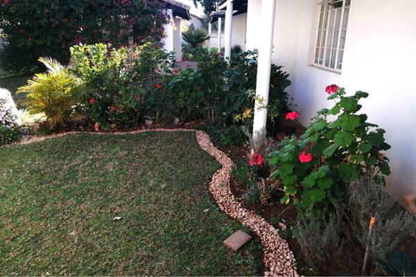 The outdoor entertainment area boasts a charming lapa with a built-in braai, set within a lush and private gardena perfect setting for relaxed gatherings.
