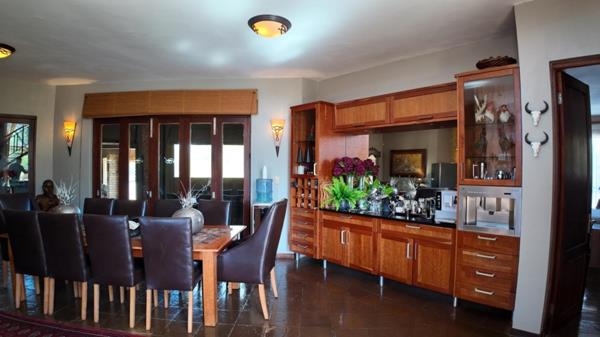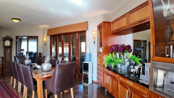 The House is a double Storey house. Ground floor has an open plan Kitchen and Dining area. There is a Lounge and Bar area. All this opens unto a Veranda with a Built-in BBQ and there is a lounge and Dining area with roll-up Canvas.
