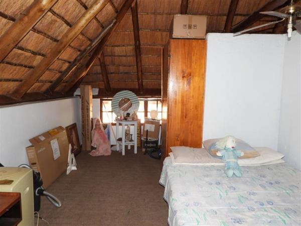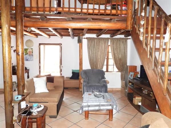 The main house welcomes you with an inviting open-plan layout where the lounge, dining, and kitchen areas flow together seamlessly. The kitchen, complete with a breakfast nook, is both stylish and practical, ideal for family meals or a quiet morning coffee. Two comfortable bedrooms are situated downstairs, while the third bedroom enjoys privacy upstairs, opening onto its own balcony with tranquil views. Two beautifully finished bathrooms, including an en-suite, add everyday ease. Fully tiled throughout, this home also features solar power, a laundry, a double garage, a water tank, and a borehole, ensuring sustainable living with modern comfort.