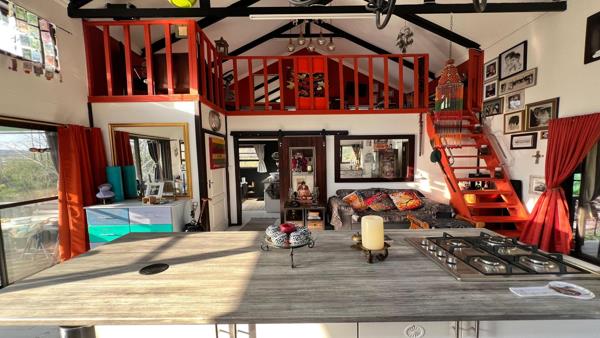 The home features mosquito-netted aluminium sliding doors and windows throughout, ensuring comfort without compromise. The bright, double-volume open-plan kitchen is cleverly designed and includes a ladder to an 18m² loft, as well as a hidden trapdoor that leads directly to the downstairs bedroom.