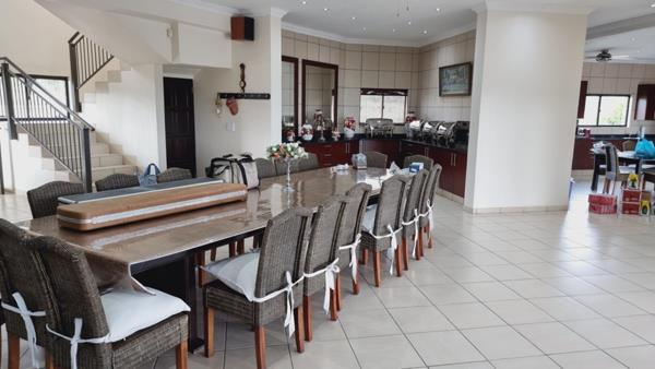 The Lodge is a 1600m and have 15 bedrooms from which 4 x en-suite bedrooms are on the 1st floor. There is also a small TV/Lounge area on the first floor. Each ground floor bedroom has views and each of the 15 bedrooms have a small kitchenette, a mounted TV and en-suite bathrooms. The lodged boast of a communal kitchen area with a food serving/ Buffet area. There is a game room and bar area as well as a lounge with a TV room. The design is absolute unique as the BBQ boma, and Swimming pool are central in the design.
