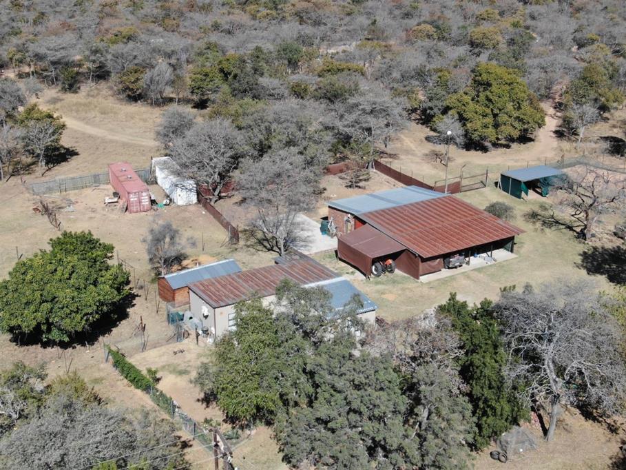 The property is well equipped with a four-vehicle carport and an extended roof section suitable for a tractor. Various outbuildings offer additional storage and workspace. There are goat kraals and covered structures, making the property suitable for small-scale livestock. The land is fully game fenced, and water is supplied by two boreholes and water reservoirs.