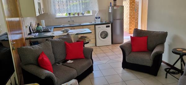 SAVE AND SECURE UNIT WITH OPEN PLAN KITCHEN AND LOUNGE, BUILT IN CUPBOARDS, FURNITURE INCLUDED- FRIDGE, BOSH FRONT LOADER WASHING MACHINE, QUEEN BED, TV, AND TWO CHAIRS COUCH. LOCK STOCK AND BARREL.