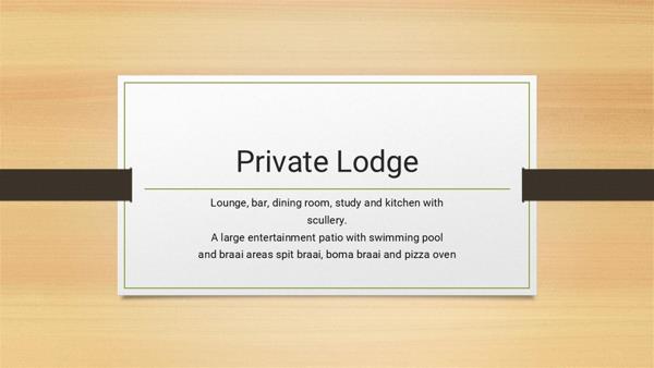 This is a ready-to-enjoy, exceptionally well-maintained game reserve home that balances luxury, durability and practical reserve life upgrades. From the vast teak viewing deck and the lovingly tended waterhole that draws wildlife to the high-spec solar system that slashes Eskom dependency, every improvement was made to elevate the bush experience while minimizing upkeep. The homes R12m replacement value and the quality of finishes make it an outstanding offering for owners who value spectacular views, reliable infrastructure and refined, worry free entertaining.