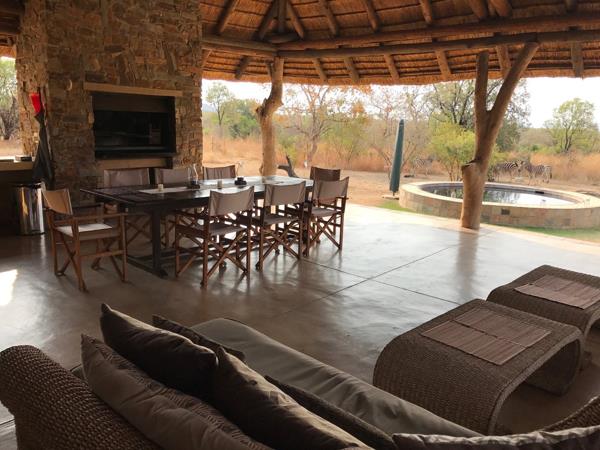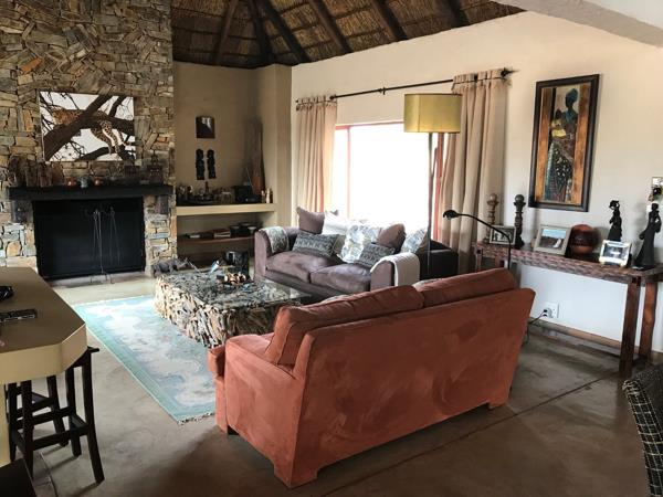 The open plan kitchen comes with luxury appliances complete with a breakfast nook. The lounge and Dinning room are open plan and lead out onto a gorgeous terrace with a built in braai which is ideal for those amazing bushveld evenings overlooking a swimming pool often used by animals to quench their thirst.