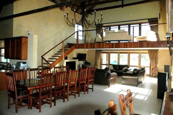 There are four bedrooms seperate from the main lodge each with bathroom and own balcony/stoep area. The entertainment area consist of a large veranda with built-in braai, wooden deck with swimming pool and lovely views. The Zebula Golf estate offers a world class golf course, luxury spa, conference venue and safaris/animal interaction plus much much more.