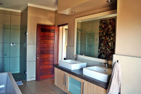 4 Bedroom house for sale in Zebula Golf Estate . A beautiful 4 bedroom house situated on a golf estate. Each bedroom has an en-suite bathroom.Two of the bedrooms are upstairs and have balconies for viewing the beautiful outdoors, and have walk-in cupboards. The other 2 bedrooms are located on the ground floor and have built-in cupboards. The entertainment area is situated on the second floor with a balcony to survey the bushveld and has a variety of entertainment features to entertain everyone.