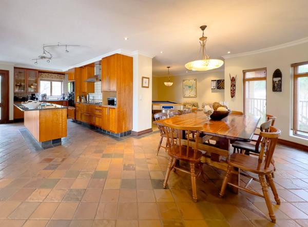 A grand fireplace adds charm and warmth to the space, which flows into the elegant dining area and games room. The heart of the home is a modern, well-appointed kitchen, complete with a convenient scullery and direct access to a double garage.