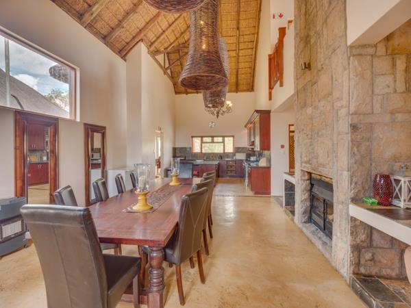 Upstairs has a separate lounge/ Entertainment area with a pool table and fireplace, this opens up onto an undercover Jacuzzi deck, overlooking the bushveld. The home has a lock up garage and 3 undercover parkings including a Golf Cart.