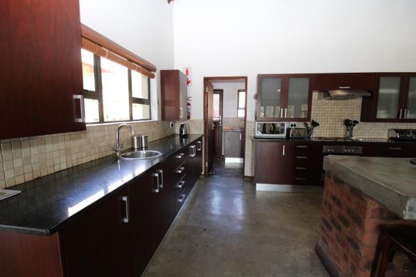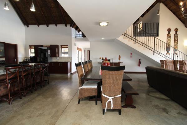 This architecturally designed lodge features an expansive open-plan lounge, dining room, and kitchen all flowing seamlessly onto a generous patio with a built-in braai. Warm fireplace in the lounge and dining areas add a cozy ambiance to winter evenings..