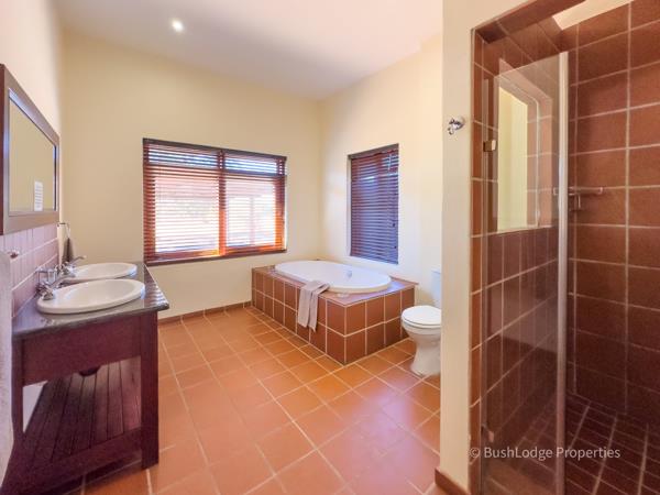 Upstairs is where the fun beginswith a dedicated bar area, TV lounge, and snooker space, all flowing out onto a large upper stoep with uninterrupted views over the surrounding Bushveld. Two additional ensuite bedrooms with luxurious bathrooms (featuring both bath and shower) round out this superb offering.