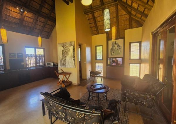 The open plan kitchen comes with luxury appliances complete with a breakfast nook. The lounge and Dinning room are open plan and lead out onto a gorgeous terrace which is ideal for those amazing bushveld evenings overlooking a swimming pool often used by animals to quench their thirst.
